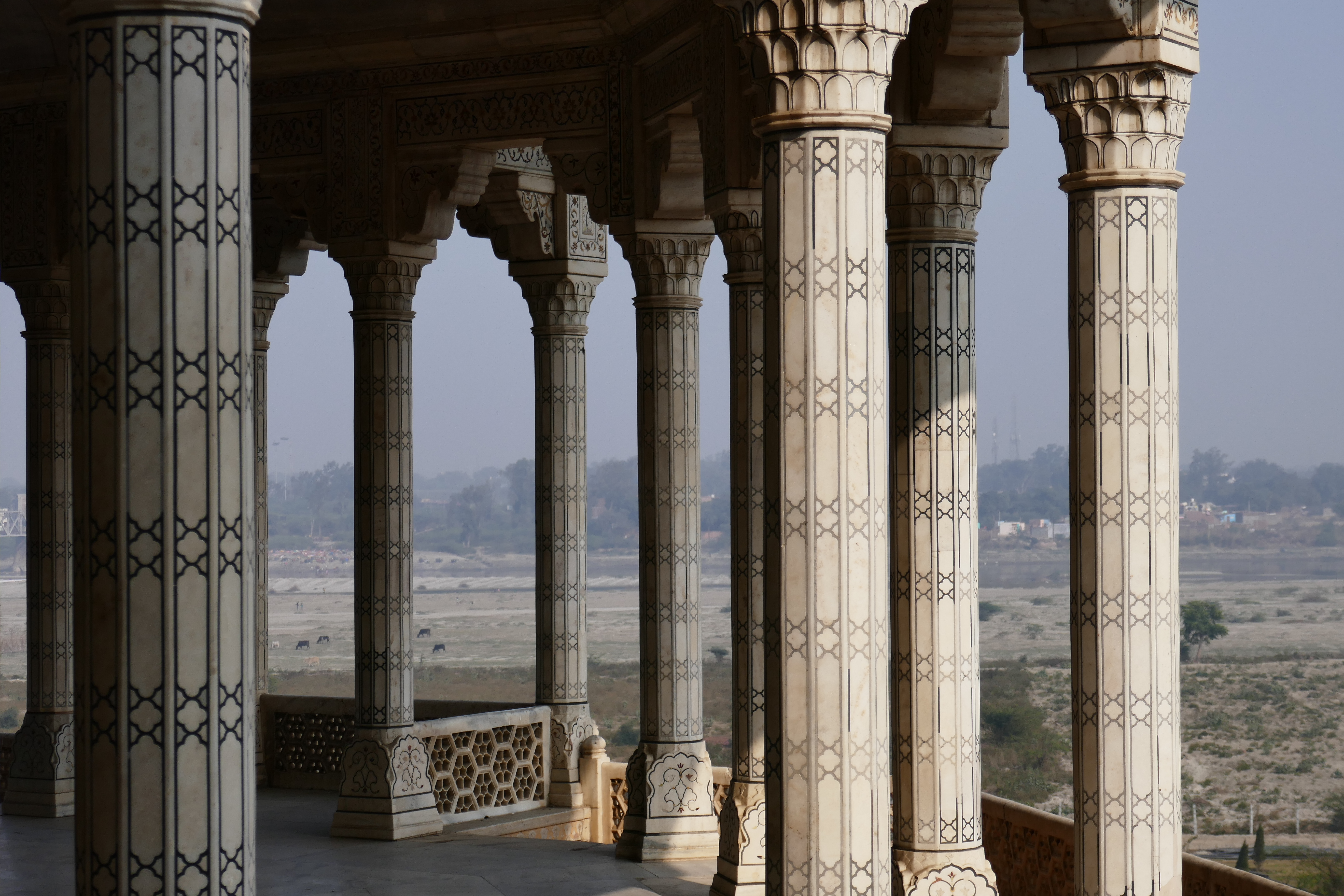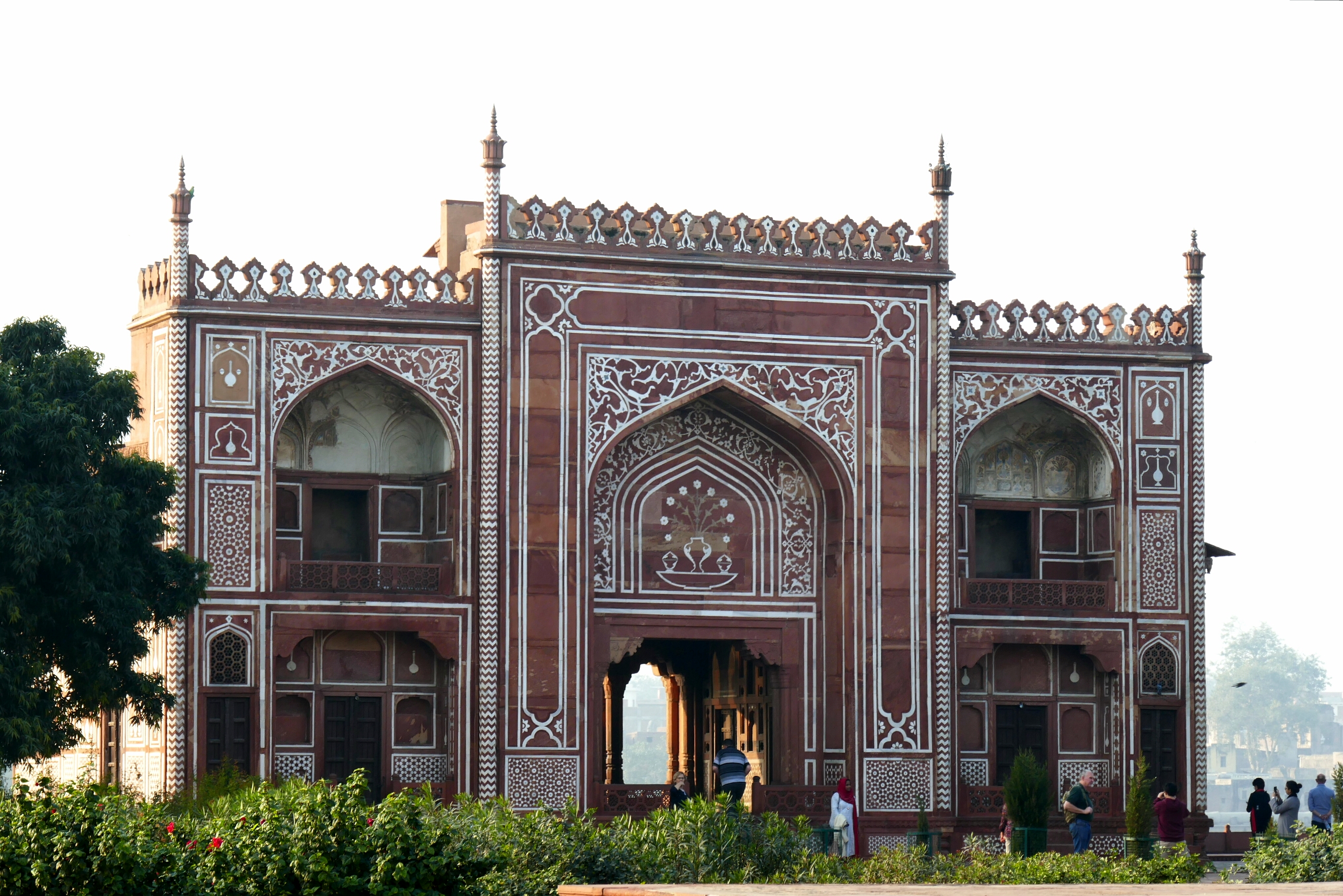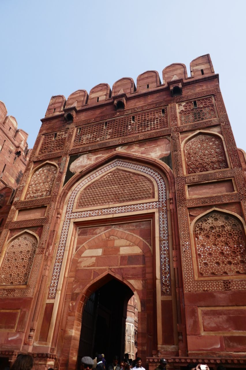 Am Nachmittag fuhren wir auf die andere Flussseite zum Itimad-ud-Daula-Mausoleum, auch kleines Taj Mahal genannt. Auch hier waren die vier Eingangstore, die das Bauwerk zu allen Himmelsrichtungen einrahmte, nicht weniger beeindruckend wie das Grabmal selbst.