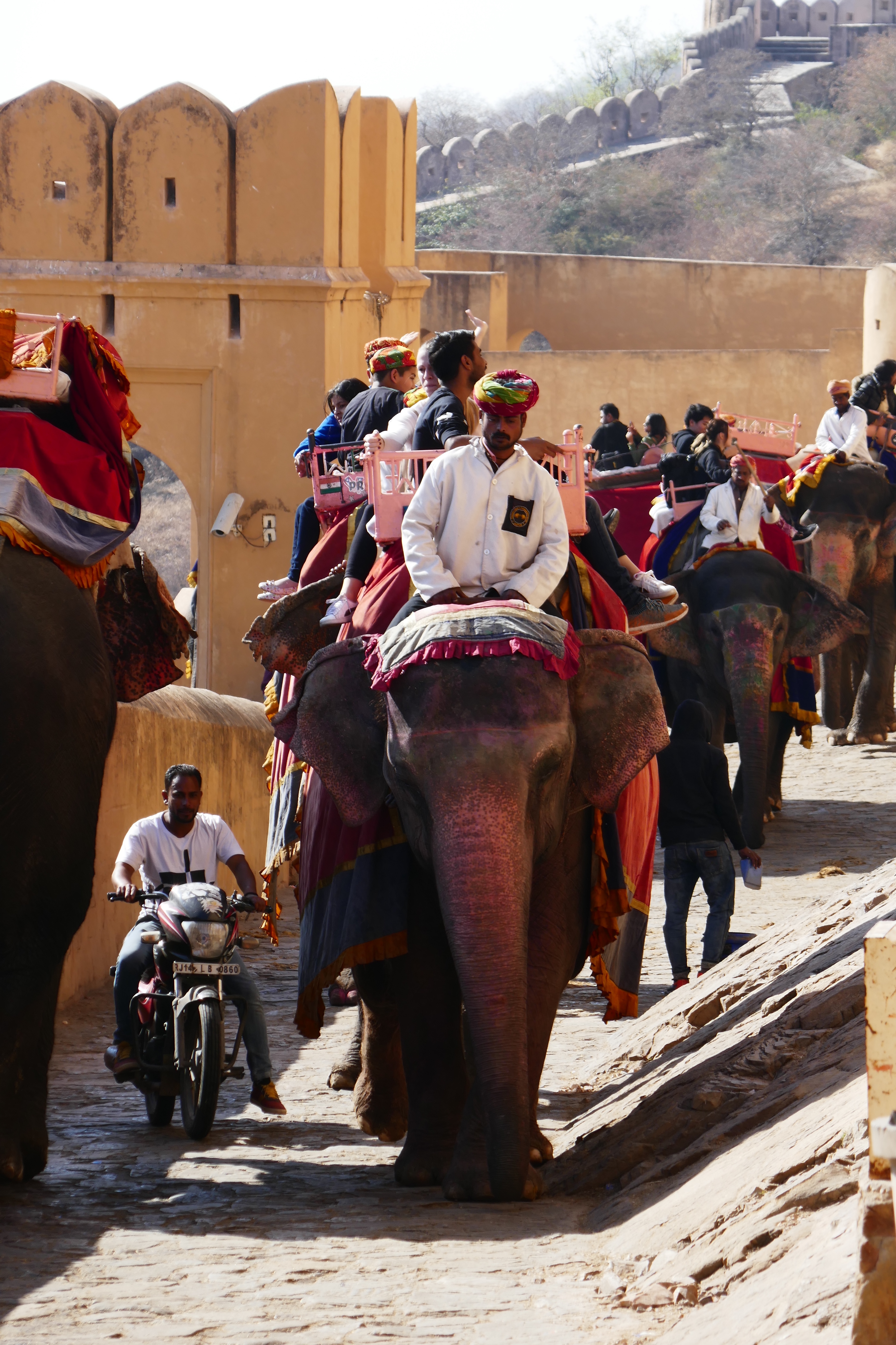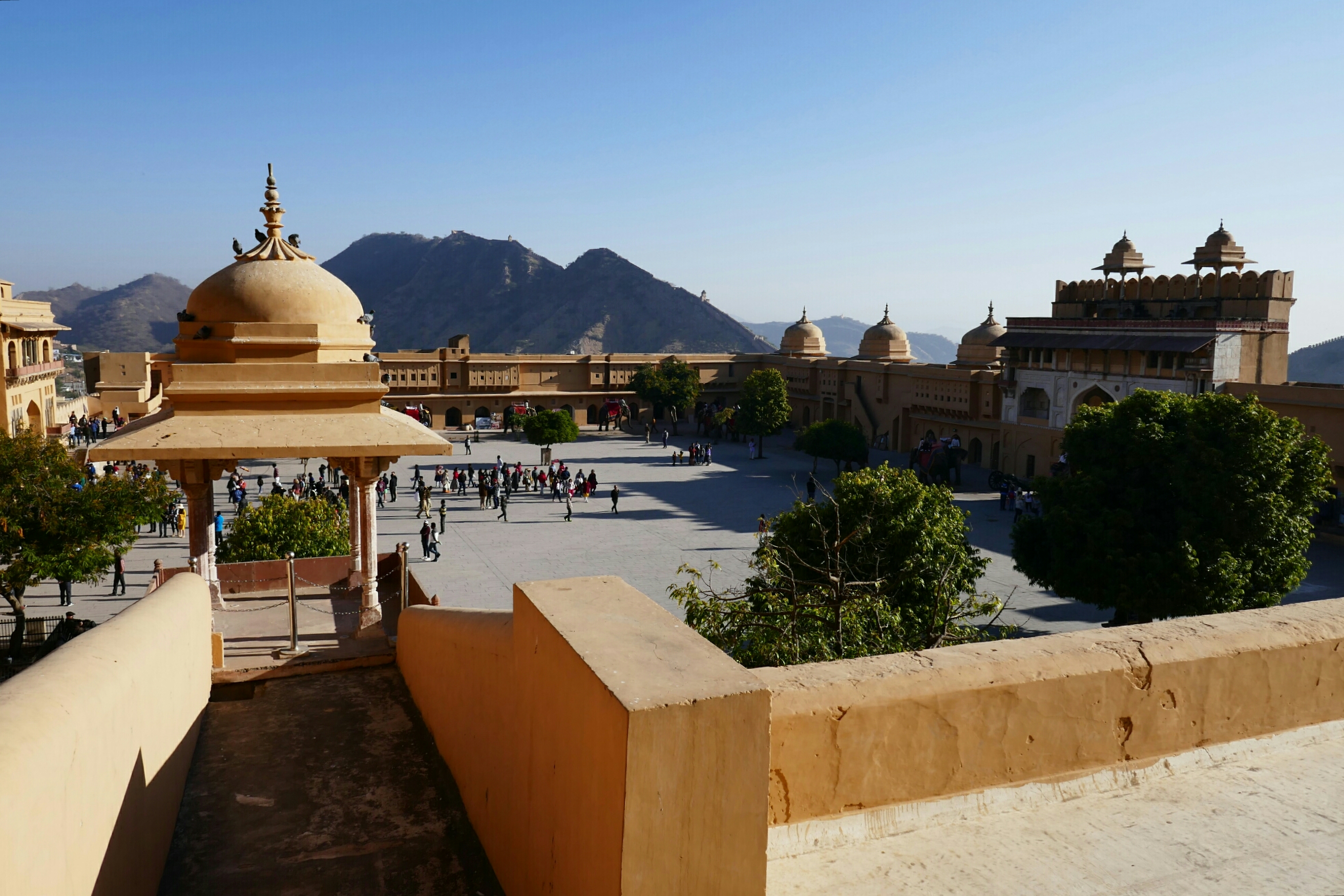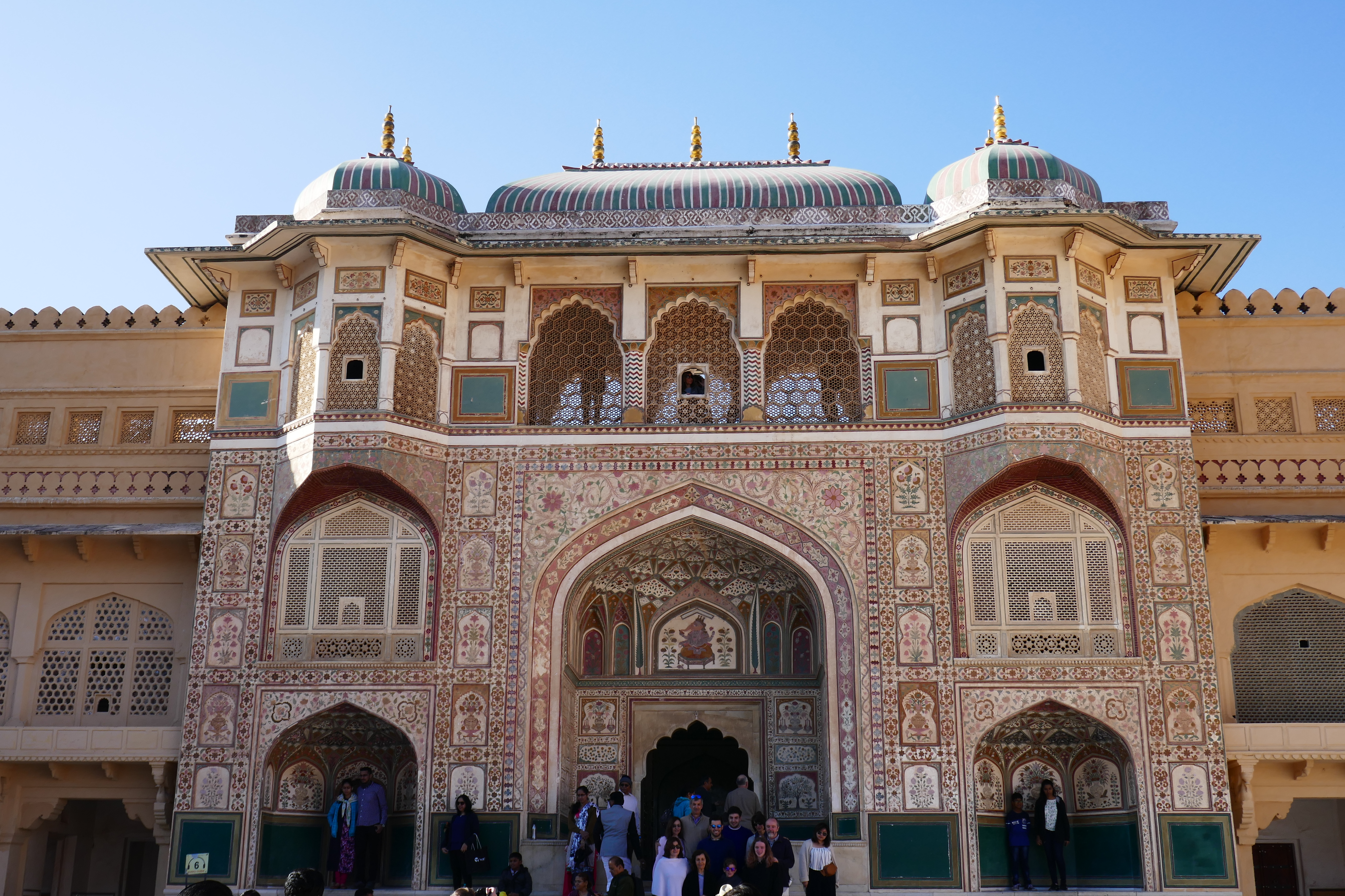 Am nächsten Tag war wieder ein umfangreiches Programm vorgesehen. Unsere Abfahrtszeit hatte sich mittlerweile bei halb 9/9 eingependelt, was sehr angenehm war. Wir begannen mit einem Fotostopp am Palast der Winde und fuhren dann zum Amber Fort.