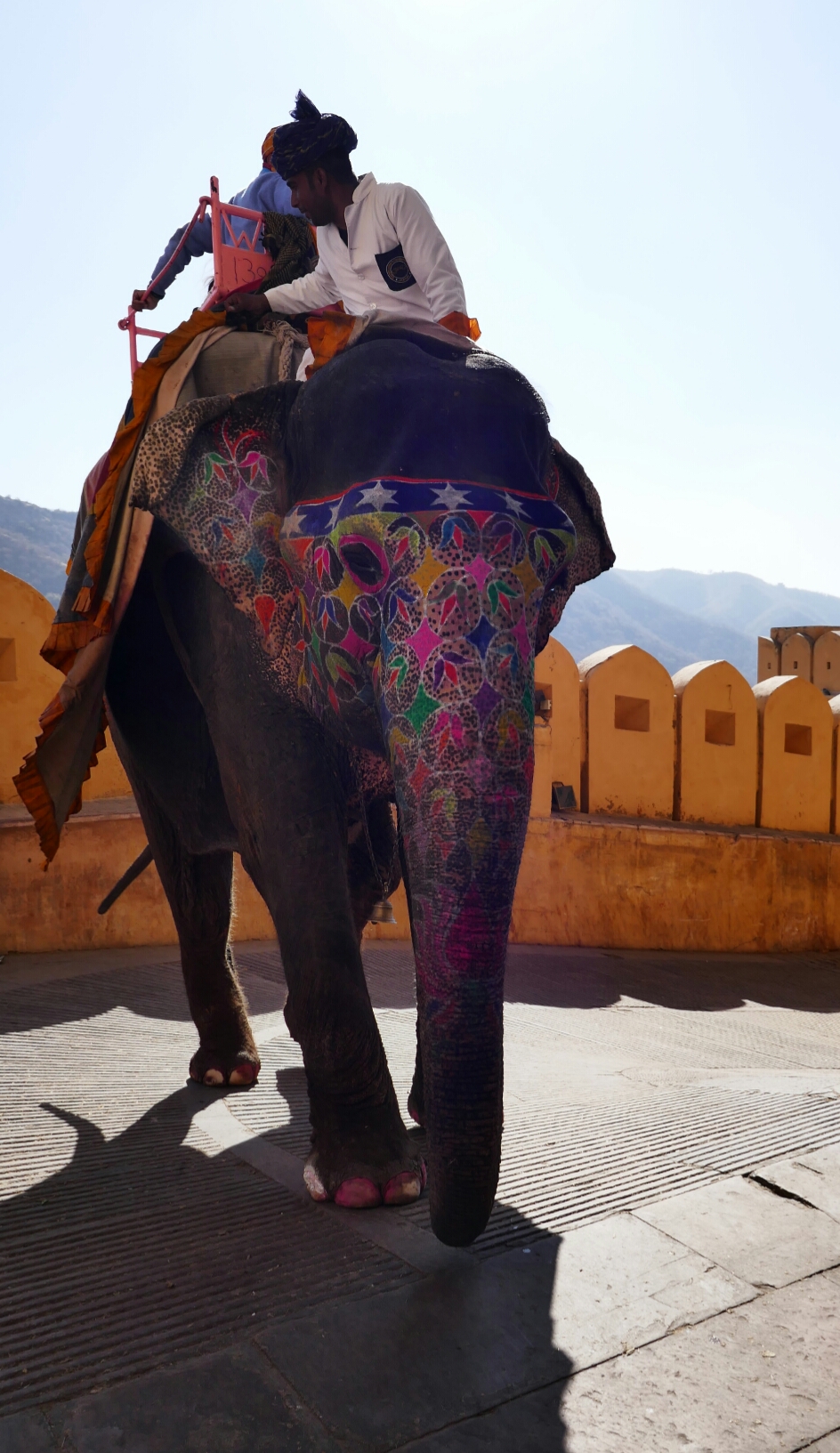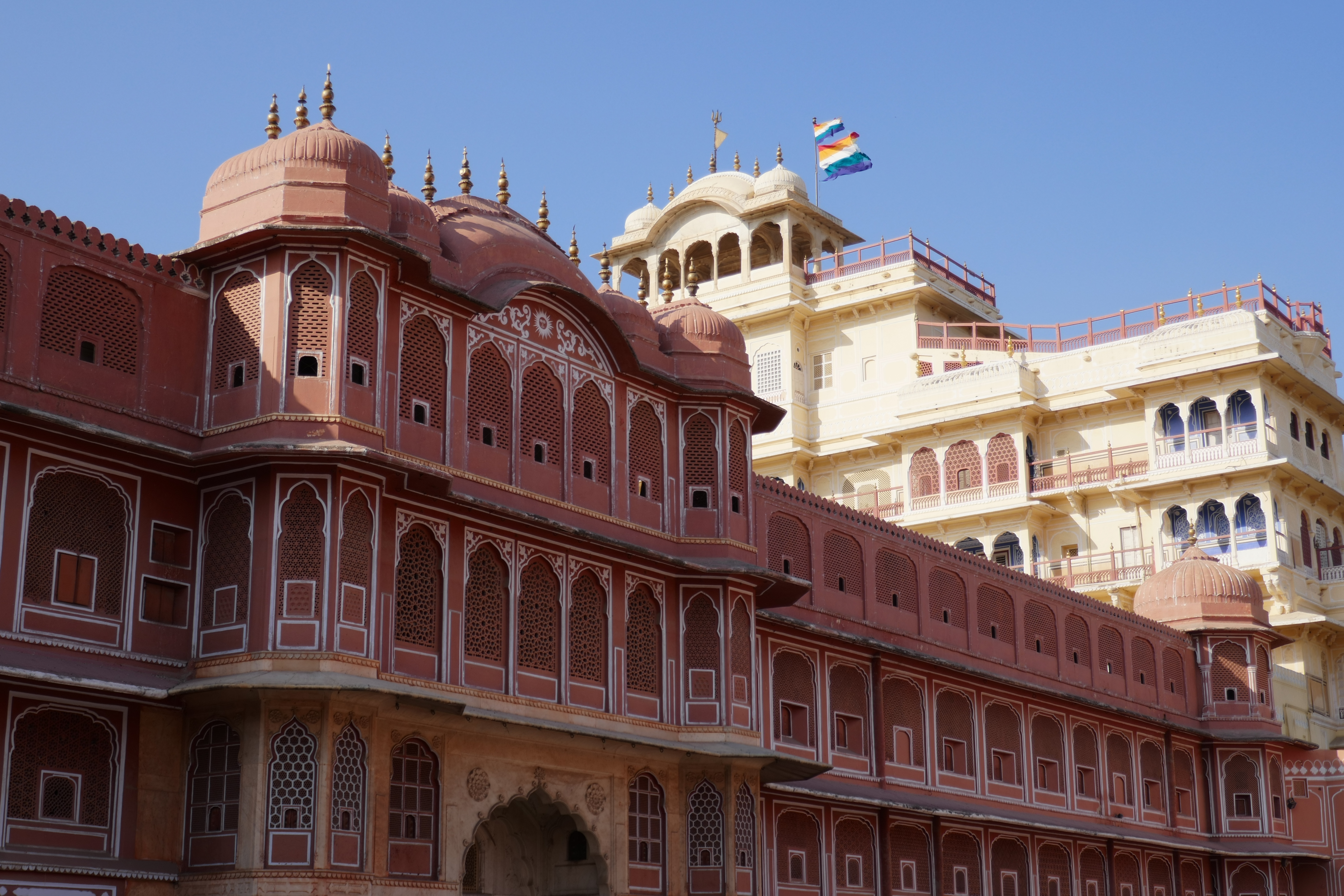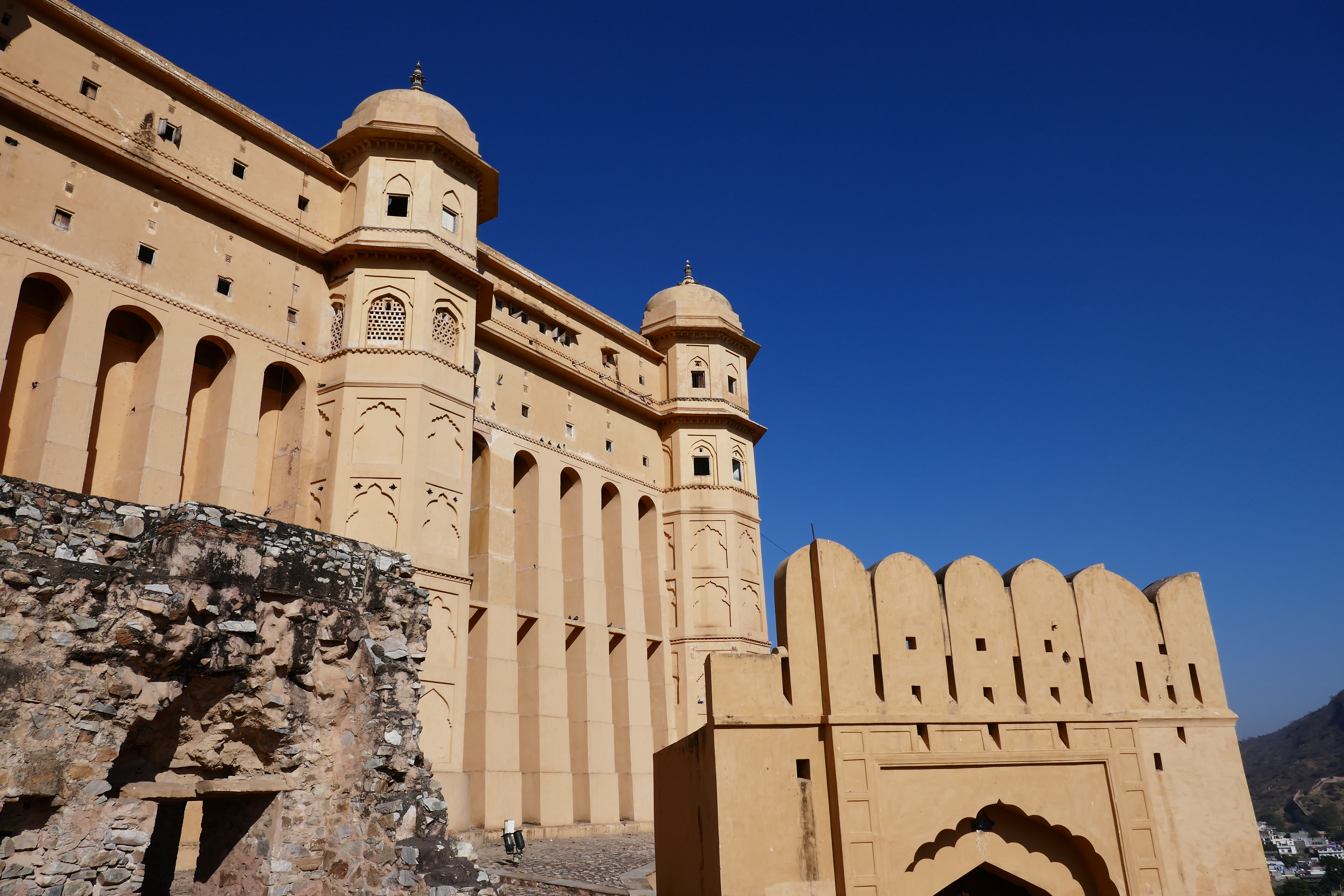 Am nächsten Tag war wieder ein umfangreiches Programm vorgesehen. Unsere Abfahrtszeit hatte sich mittlerweile bei halb 9/9 eingependelt, was sehr angenehm war. Wir begannen mit einem Fotostopp am Palast der Winde und fuhren dann zum Amber Fort.
