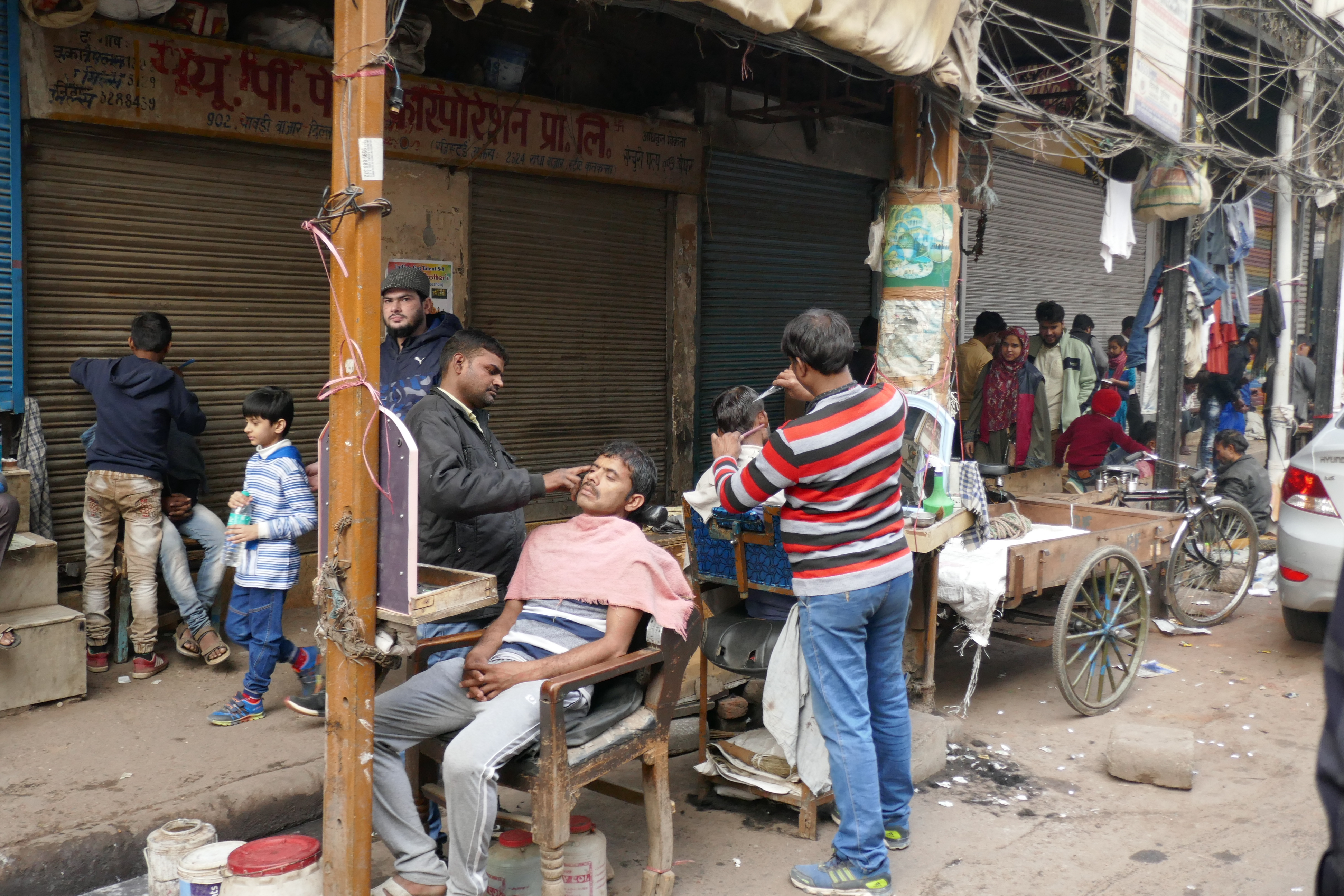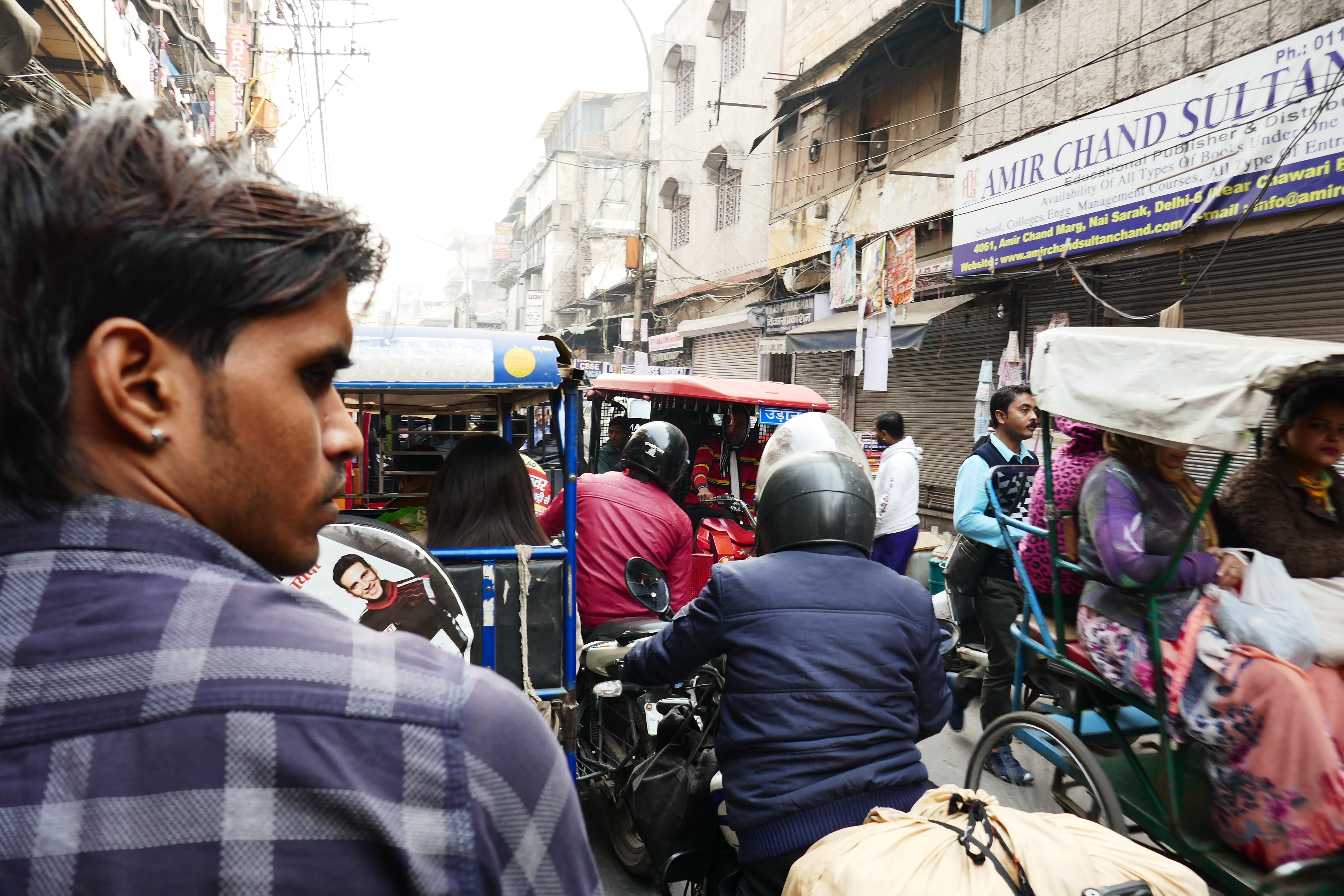 Nachdem Vipin uns die wichtigsten Informationen über die Moschee geliefert hatte, machten wir mit Fahrradrikshas eine kleine Tour durch die engen Gassen von Old Delhi. Dies war definitiv eines der Highlights der Tour. Viele Straßenhändler, riesige Stromkabelknoten und viel zu viele Fahrzeuge für die kleinen Gassen prägten unseren ersten Eindruck.