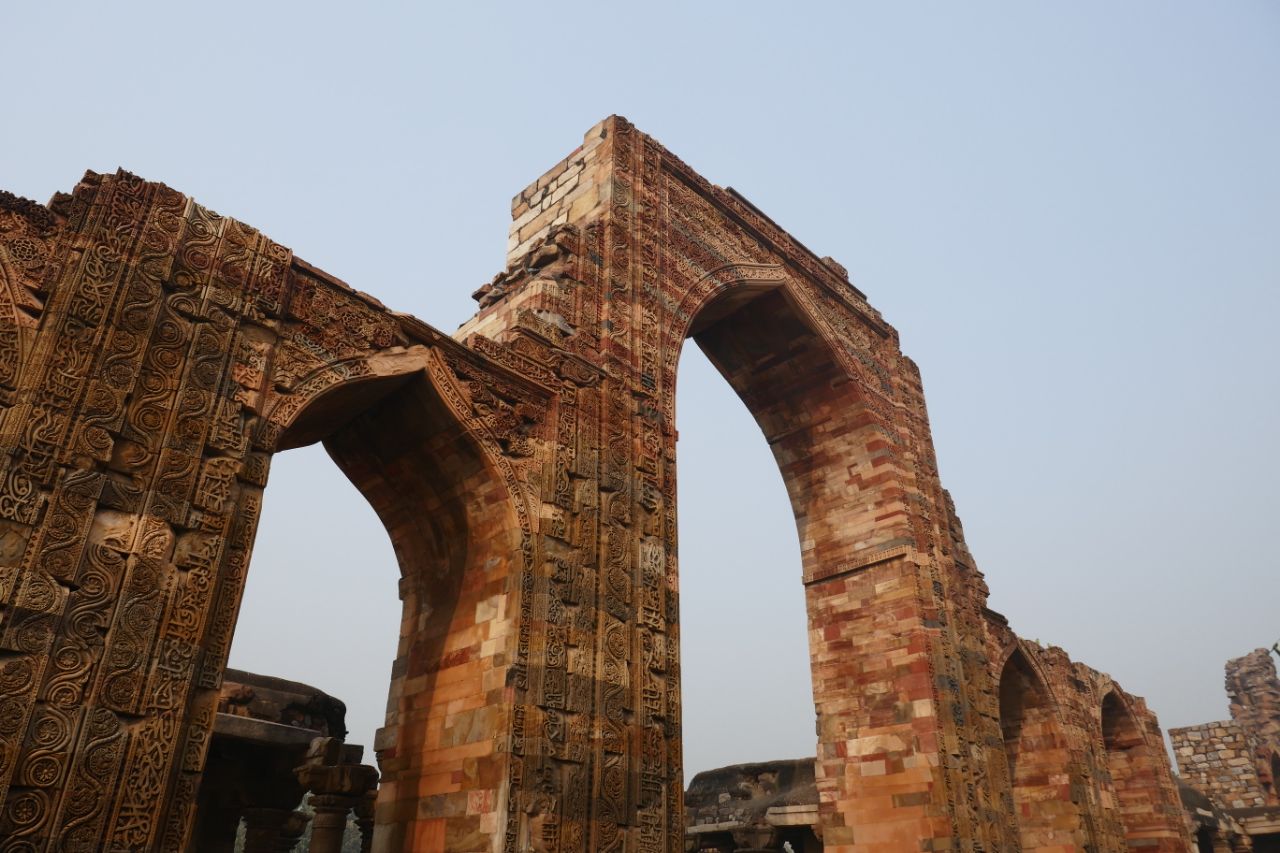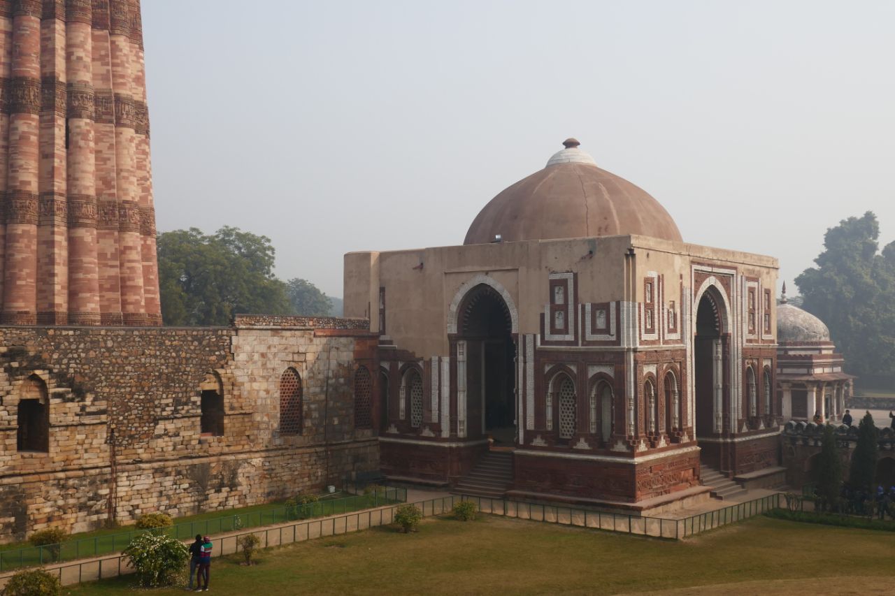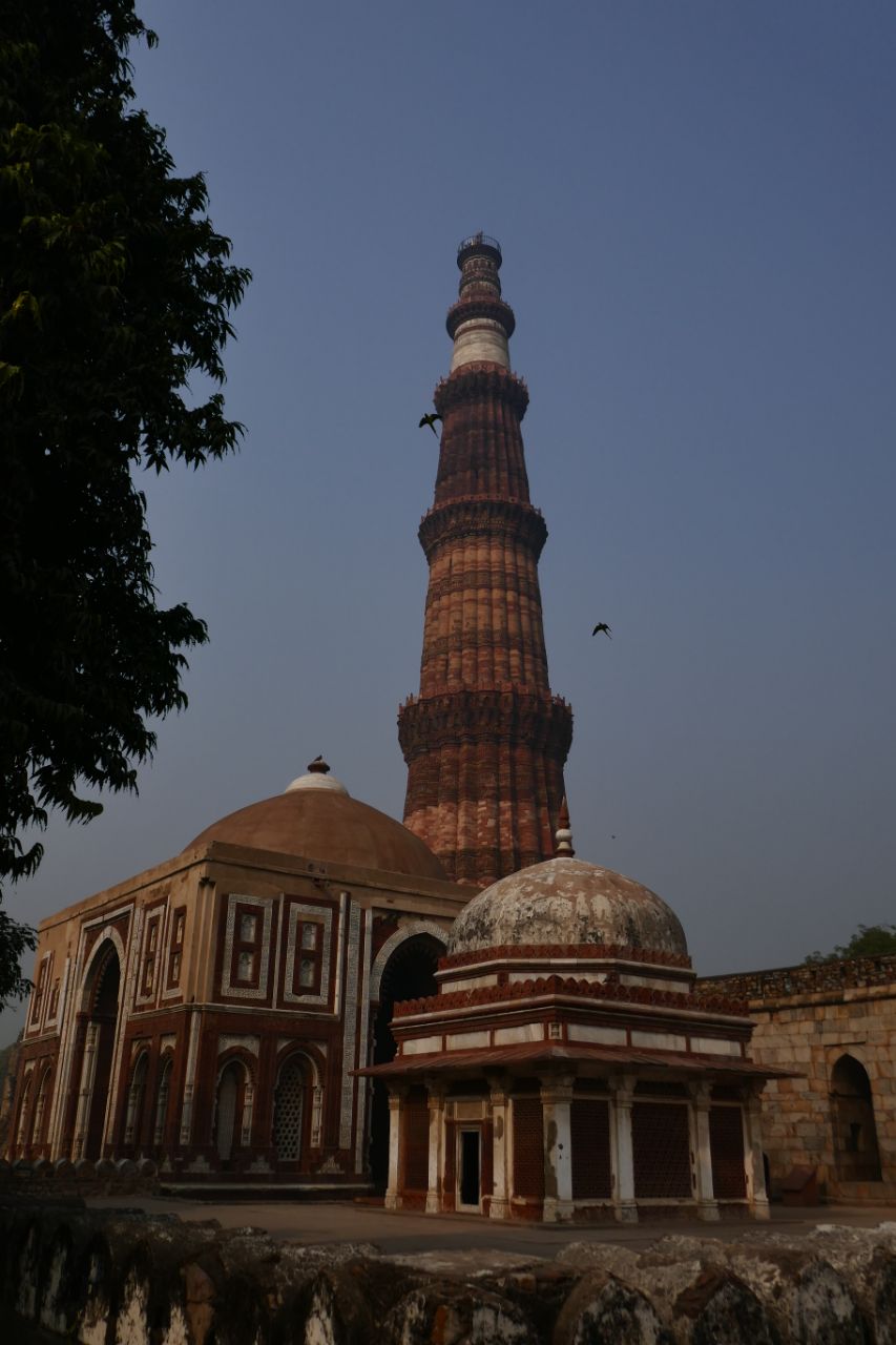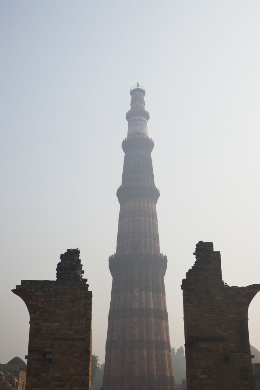 Um halb 9 des nächsten Tages ging es zu unserem ersten Tagesziel Qutb Minar. Da uns eine Metrofahrt versprochen worden war, fuhren wir drei Haltestellen mit diesem Verkehrsmittel, bevor uns unser Bus wieder einsammelte. Wirklich gelohnt hat sich diese Fahrt nicht, da es eine ganz normale Metro war, wie man sie auch aus Deutschland kennt. Qutb Minar ist ein besonders hoher Minarett umgeben von Ruinen. Vipin konnte uns sehr ausführlich über die Geschichte dieser Stätte berichten, neigte aber dazu, seine Vorträge vor Betreten der Anlagen ausführlich auszuführen, was für neugierige Menschen wie mich nur schwer auszuhalten war.